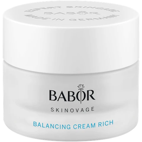 Babor Skinovage Balancing Cream Rich – qarışıq və yağlı nahiyələri olan dəri üçün nəzərdə tutulmuş balanslaşdırıcı gündəlik üz kremidir. Dərini intensiv nəmləndirir, eyni zamanda T-zonanı matlaşdıraraq sağlıklı balans yaradılmasına kömək edir.
