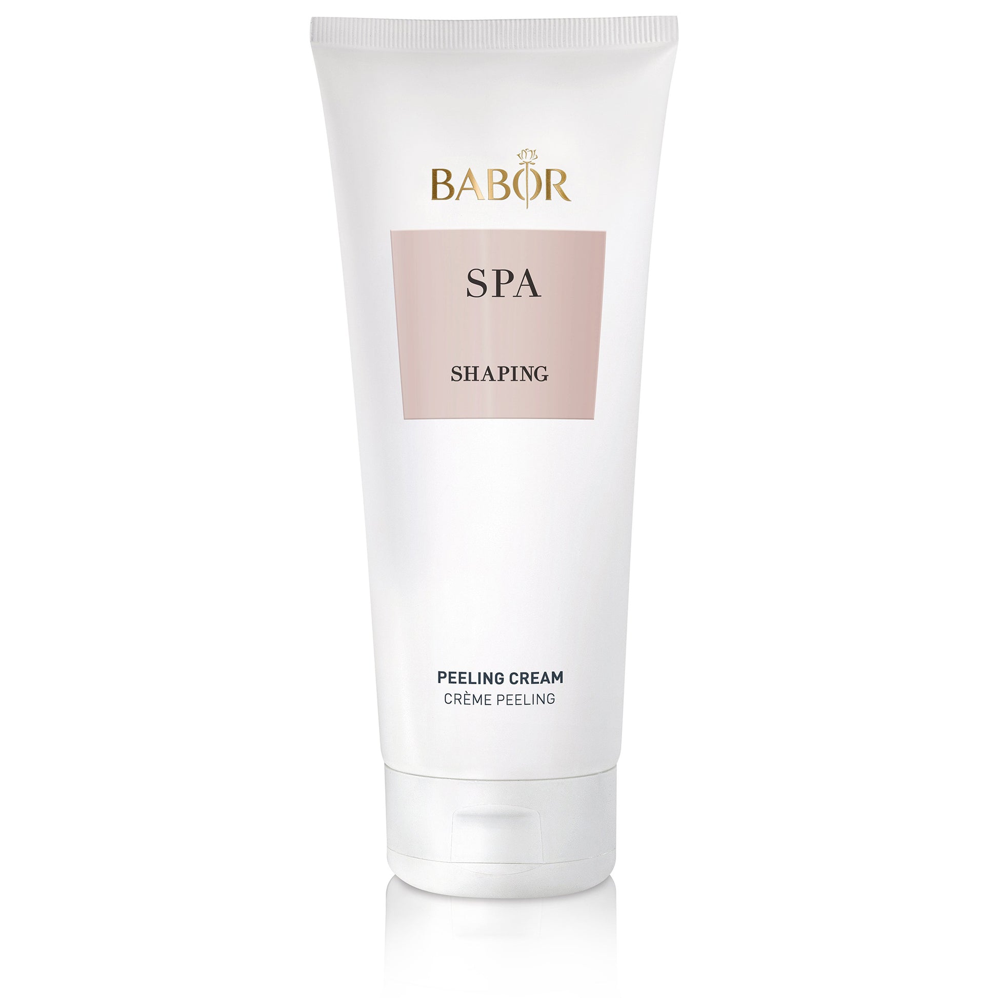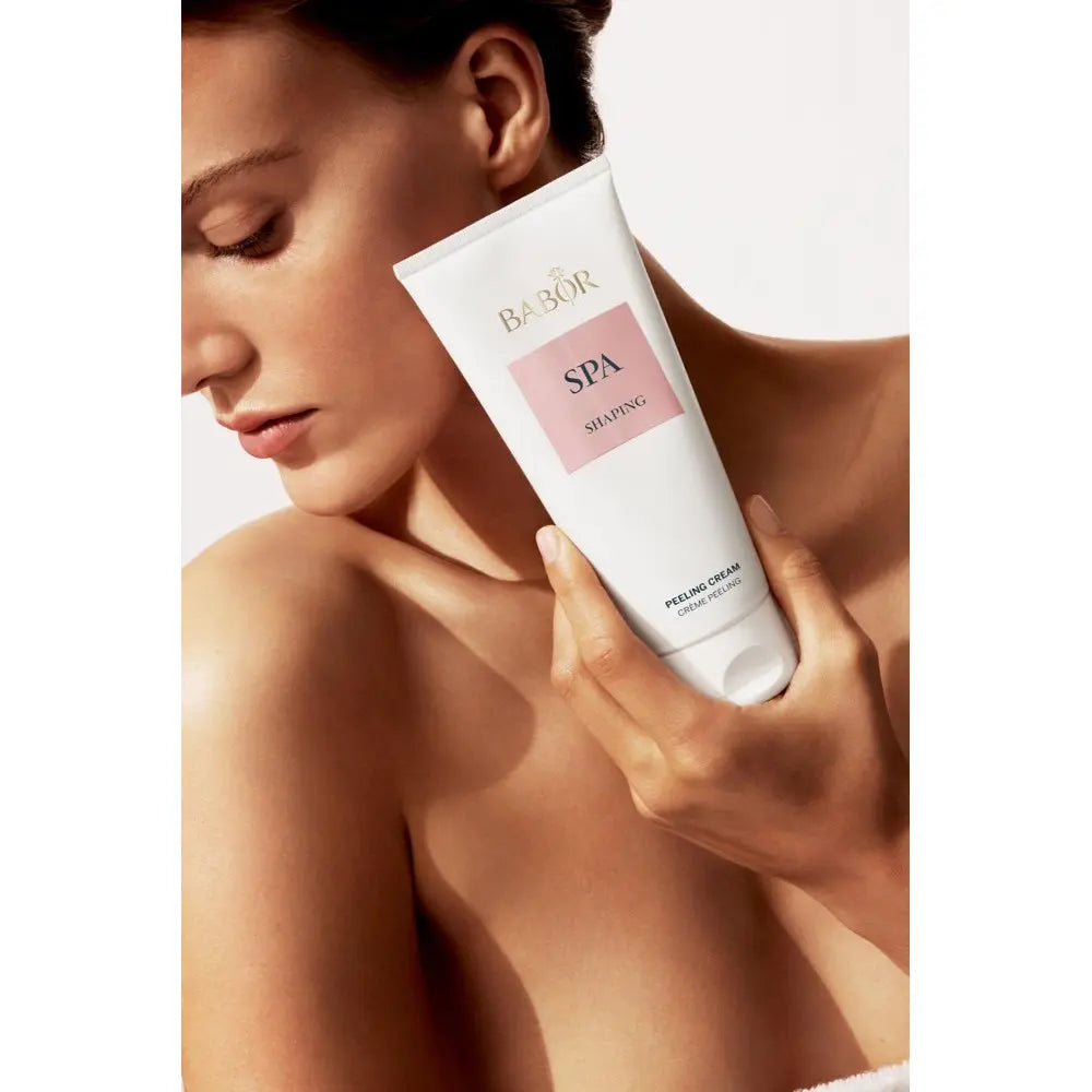 BABOR SPA Shaping Peeling Cream – təbii celluloza granulları ilə ölü dəri hüceyrələrini nazikcə təmizləyir, dərini hamarlaşdırır və dərinlikdə təravət yaradır. Wild service tree stem cell extract və fransız pambıq toxumlarından çıxarılan deyilən peeling granulları sayəsində dəri strukturunu bərabərləşdirir, elastikliyi artırır. Portağal, mimoza, sedr, amber və misk notları ilə aromaterapiya effekti verir.
