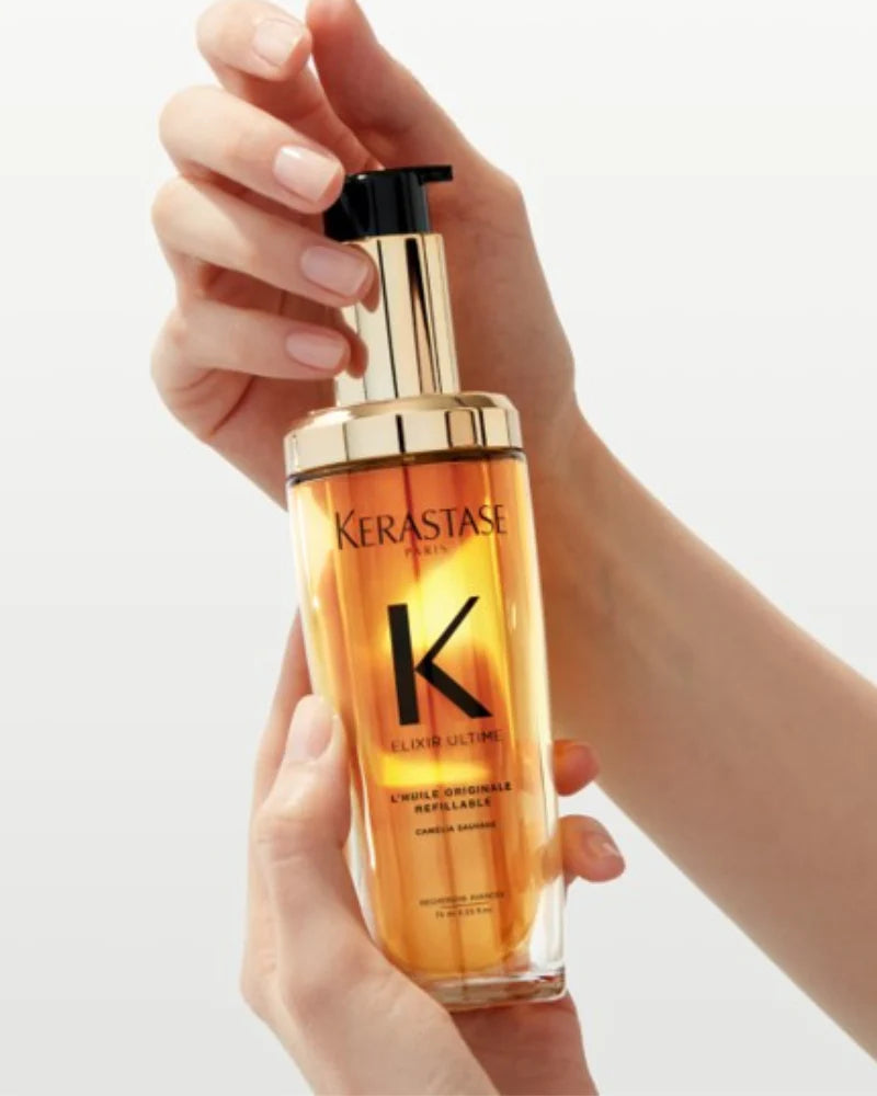 Kerastase Elixir Ultime – bütün saç tipləri üçün uyğun olan, çoxfunksiyalı saç yağıdır. Saçlara dərhal parlaqlıq, yumşaqlıq və ipəklik verir. İstiliklə formalaşdırma zamanı termal qoruma təmin edir və saç uclarının qırılmasının qarşısını alır.