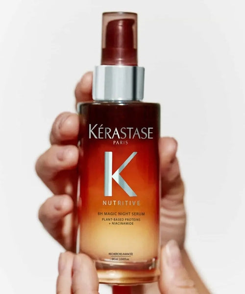 Kerastase Nutritive 8H Magic Night Serum (Nutritive Series) – gecə boyu saçlarınızı dərinlikdən qidalandıran və bərpa edən innovativ serum. Plant‑based proteinlər və niacinamide kompleksi saç liflərinə 8 saat ərzində güc, yumşaqlıq və parlaqlıq bəxş edir.