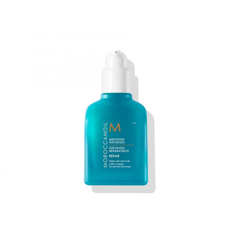 Moroccanoil Mending Infusion – argan yağı, keratin və peptid kompleksi ilə zənginləşdirilmiş açıq buraxılan intensiv saç infüzyonu; qırıq ucları bağlayır, telləri möhkəmləndirir və davamlı yumşaqlıq bəxş edir.