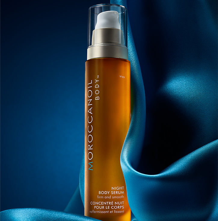 Moroccanoil Body™ Night Body Serum – gecə boyu dərini bərpa edən və sıxlaşdıran lüks formul; argan yağı, avokado yağı və skualanla zənginləşdirilmiş tərkibi dərini dərin nəmləndirir və hamarlaşdırır.