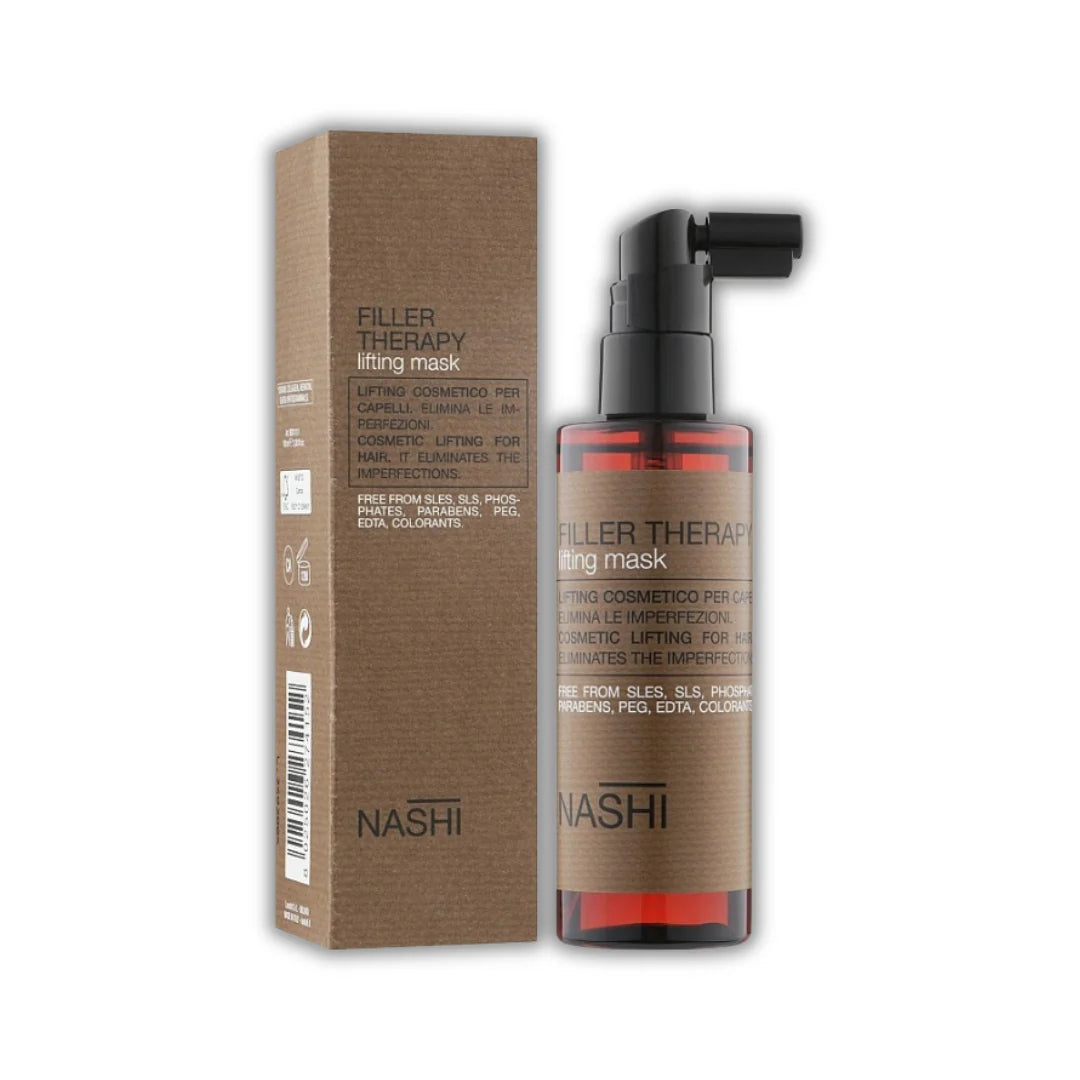 Nashi Filler Therapy Lifting Mask saç lifini dolduran filler-kompleks sayəsində dərhal hamarlıq, elastiklik və parıltı verir. Nizamsız, solğun və zədələnmiş saçlar üçün peşəkar səviyyəli qulluqdur, tüklənməni azaldır və ukladkanı asanlaşdırır.