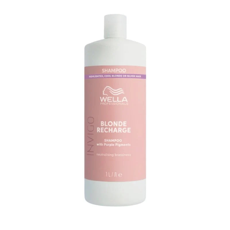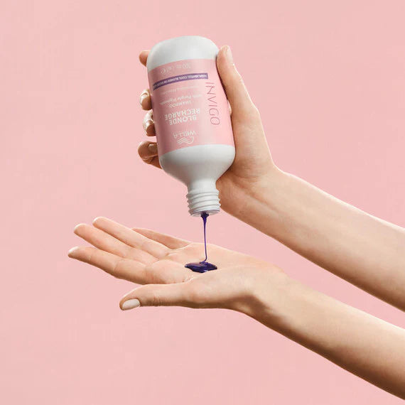 Blonde Recharge Purple Shampoo – açıq sarı, külü-sarı və ya gümüş saçlarda istənməyən sarı/narıncı alt tonları neytrallaşdıran peşəkar bənövşəyi şampundur. Saçları yumşaq təmizləyir, rəngi daha soyuq və parlaq göstərir.