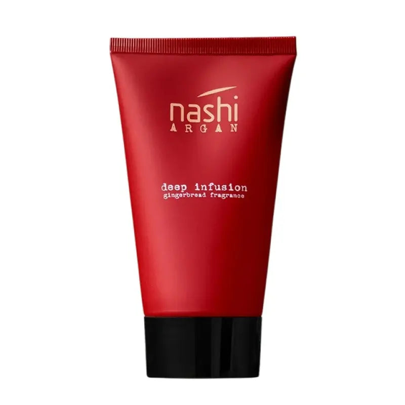 Nashi Argan Deep Infusion – orijinal arqan yağı, kətan toxumu yağı və kondisionerləşdirici komplekslə zəngin, saç lifinə dərin hoparaq quruluğu azaldan, elektriklənməni yatırdan və parlaqlığı bərpa edən professional maskadır. Xüsusi Gingerbread ətirli limitli versiya saç baxımını daha zövqlü edir..